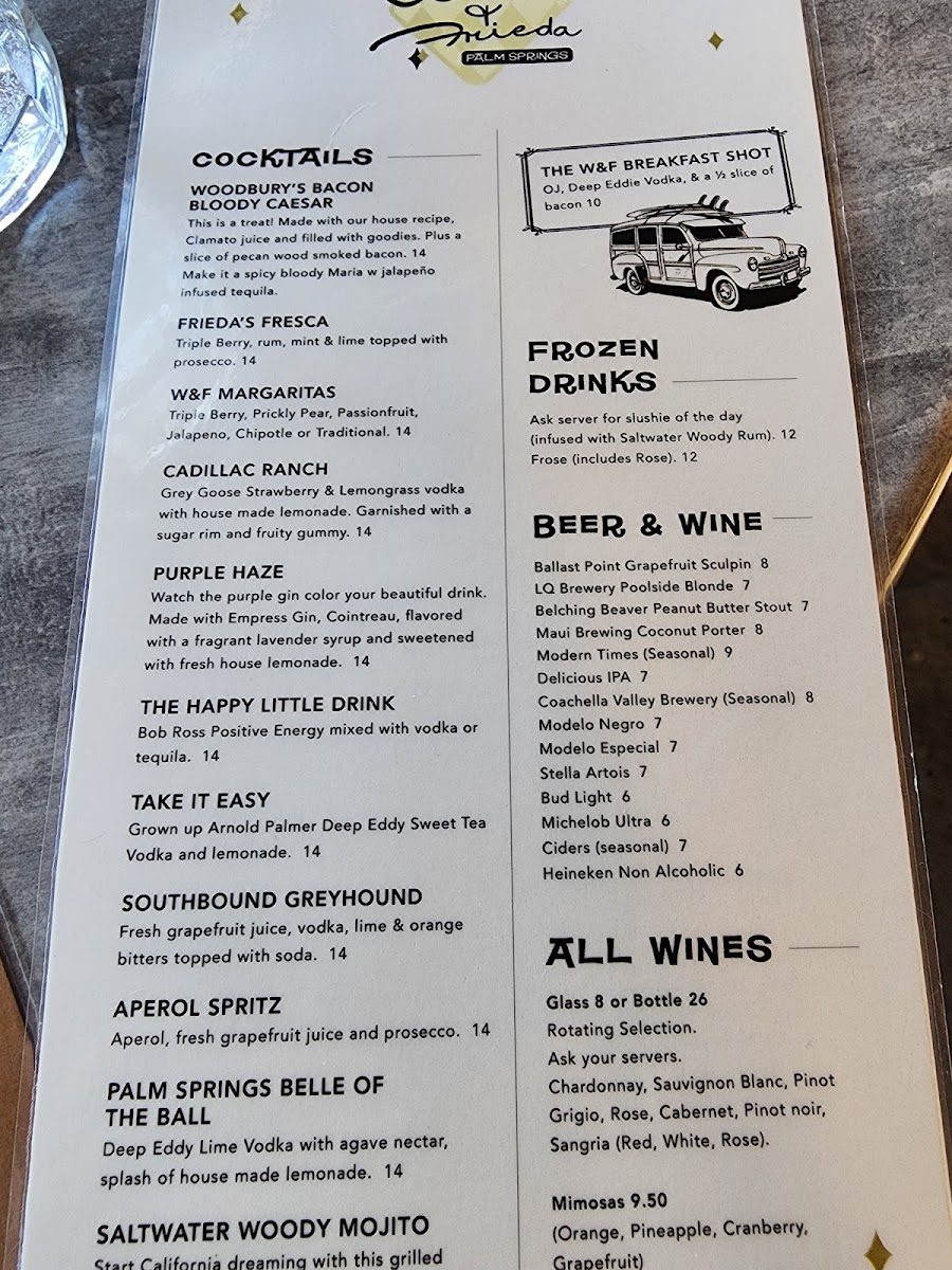 Nestled in the heart of Palm Springs at 155 S Palm Canyon Dr, Wilma & Frieda's invites you to experience a brunch and dinner delight that captures the essence of American comfort food with a creative twist. This vibrant eatery is not just a place to eat; it's a destination where generous portions meet exceptional service, making it a go-to spot for locals and visitors alike.